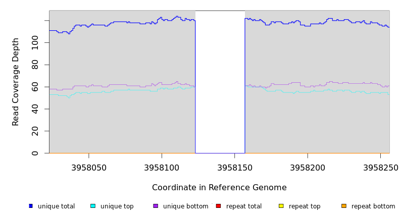 | seq id | start | end | size | ←reads | reads→ | gene | description | |||
