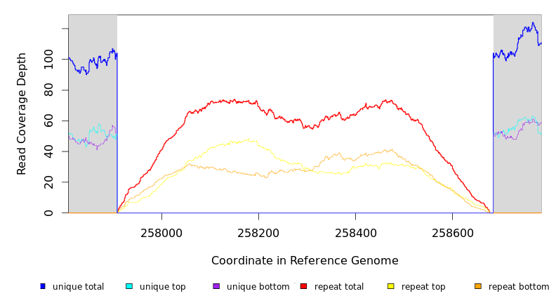 | seq id | start | end | size | ←reads | reads→ | gene | description | |||