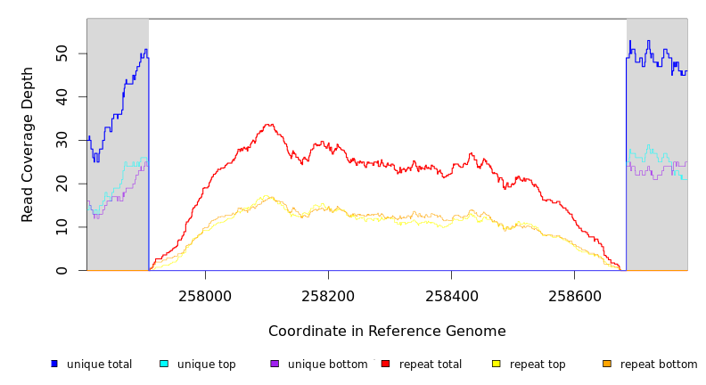 | seq id | start | end | size | ←reads | reads→ | gene | description | |||