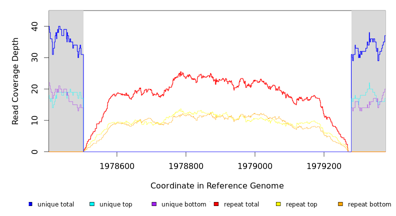 | seq id | start | end | size | ←reads | reads→ | gene | description | |||