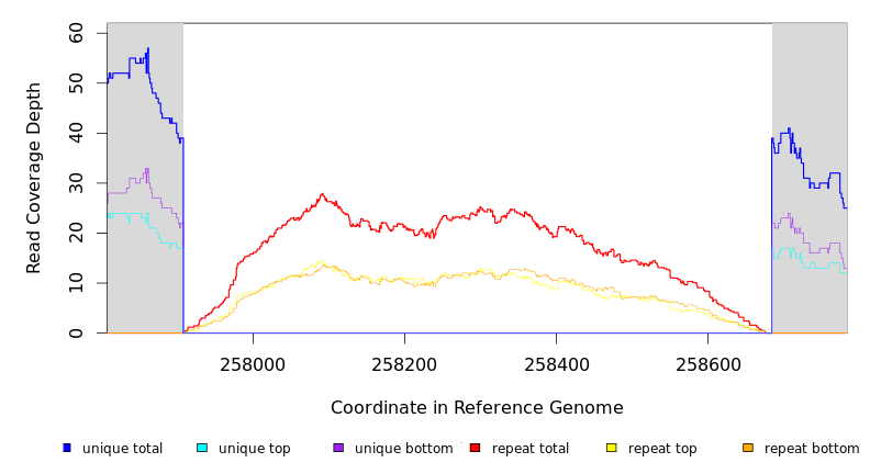 | seq id | start | end | size | ←reads | reads→ | gene | description | |||