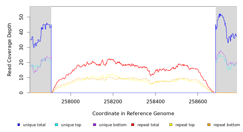 | seq id | start | end | size | ←reads | reads→ | gene | description | |||