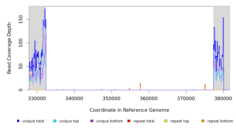 | seq id | start | end | size | ←reads | reads→ | gene | description | |||