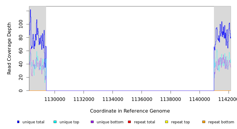| seq id | start | end | size | ←reads | reads→ | gene | description | |||