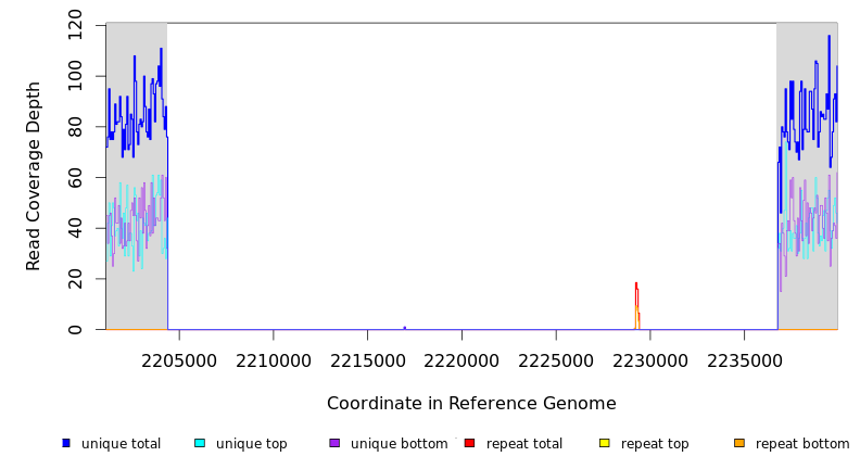 | seq id | start | end | size | ←reads | reads→ | gene | description | |||