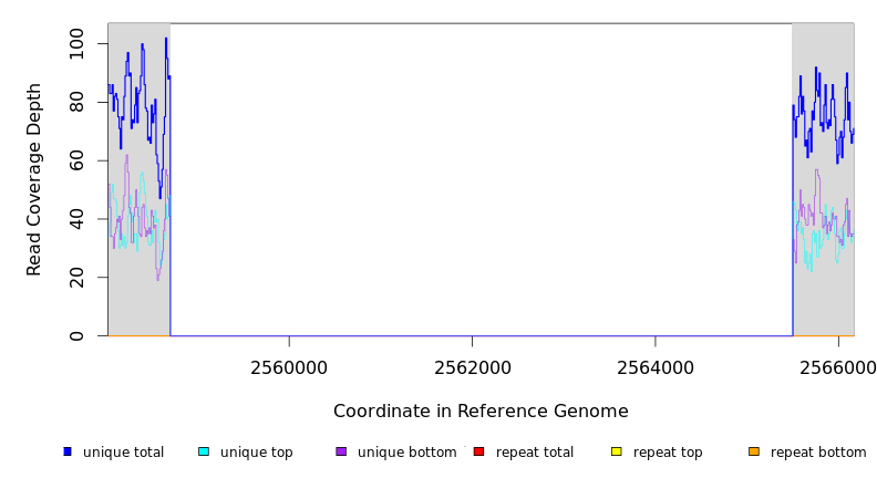 | seq id | start | end | size | ←reads | reads→ | gene | description | |||