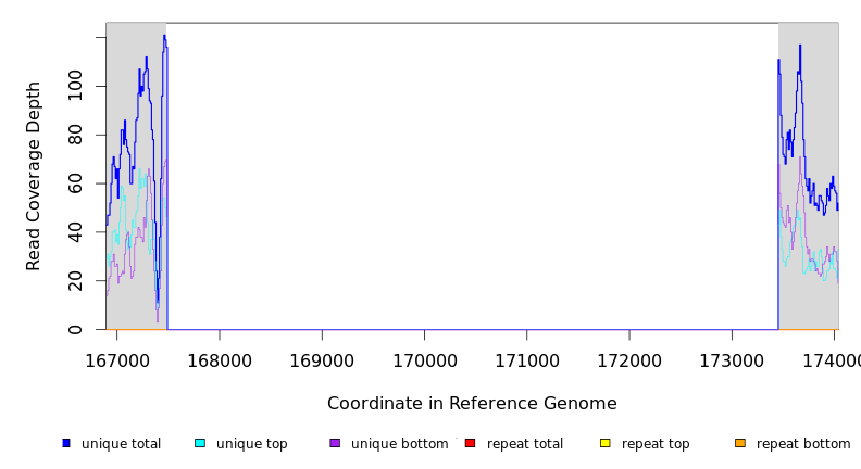 | seq id | start | end | size | ←reads | reads→ | gene | description | |||
