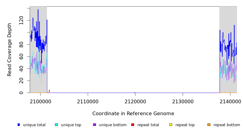| seq id | start | end | size | ←reads | reads→ | gene | description | |||
