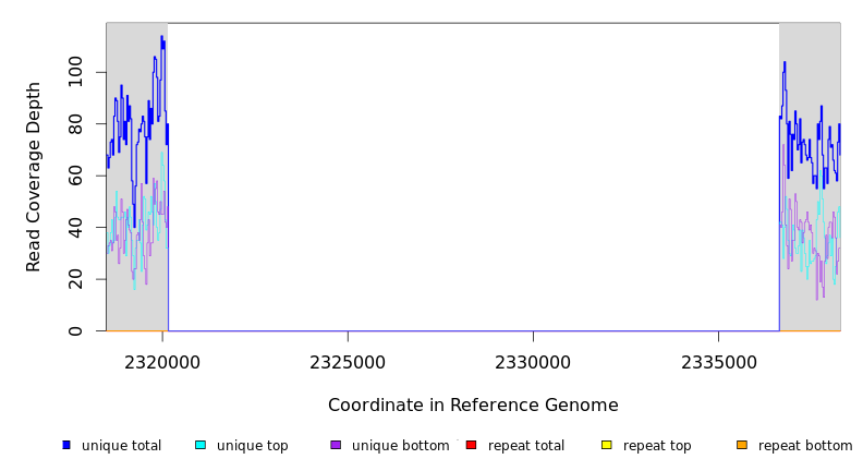 | seq id | start | end | size | ←reads | reads→ | gene | description | |||