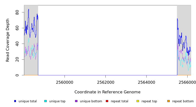 | seq id | start | end | size | ←reads | reads→ | gene | description | |||