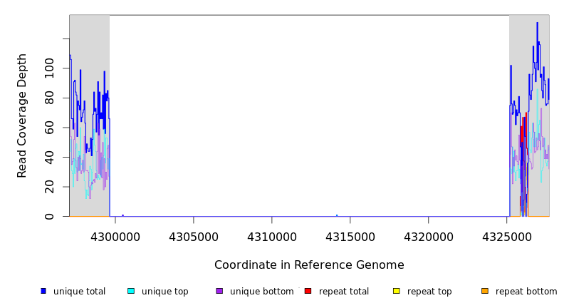 | seq id | start | end | size | ←reads | reads→ | gene | description | |||