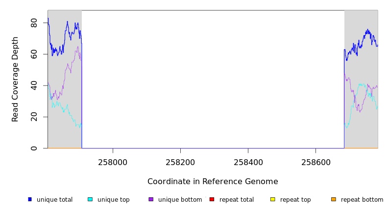 | seq id | start | end | size | ←reads | reads→ | gene | description | |||