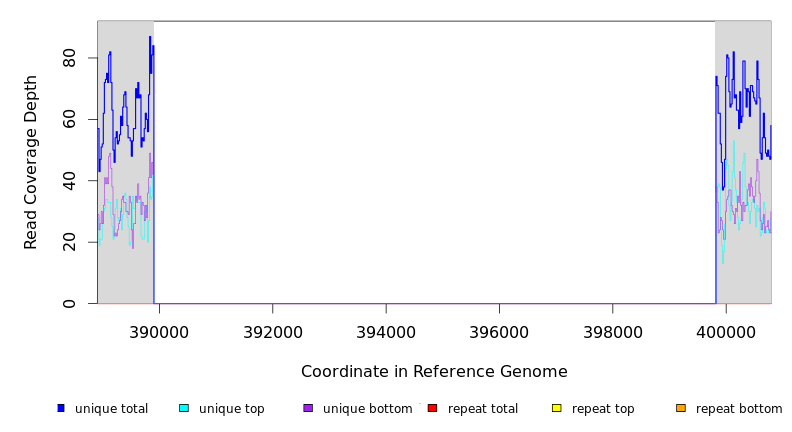 | seq id | start | end | size | ←reads | reads→ | gene | description | |||