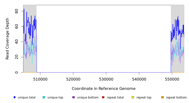 | seq id | start | end | size | ←reads | reads→ | gene | description | |||