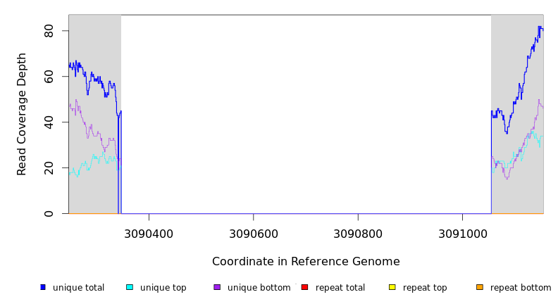 | seq id | start | end | size | ←reads | reads→ | gene | description | |||