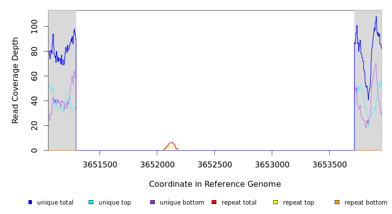 | seq id | start | end | size | ←reads | reads→ | gene | description | |||