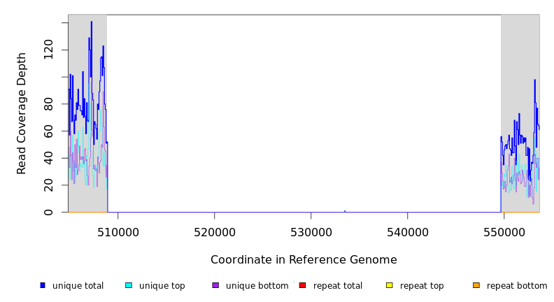 | seq id | start | end | size | ←reads | reads→ | gene | description | |||