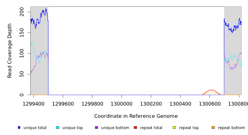 | seq id | start | end | size | ←reads | reads→ | gene | description | |||