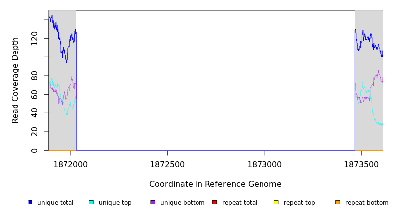 | seq id | start | end | size | ←reads | reads→ | gene | description | |||