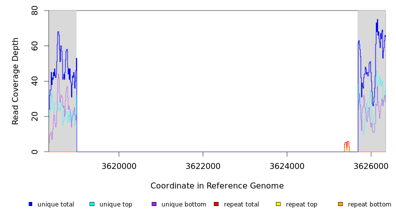 | seq id | start | end | size | ←reads | reads→ | gene | description | |||