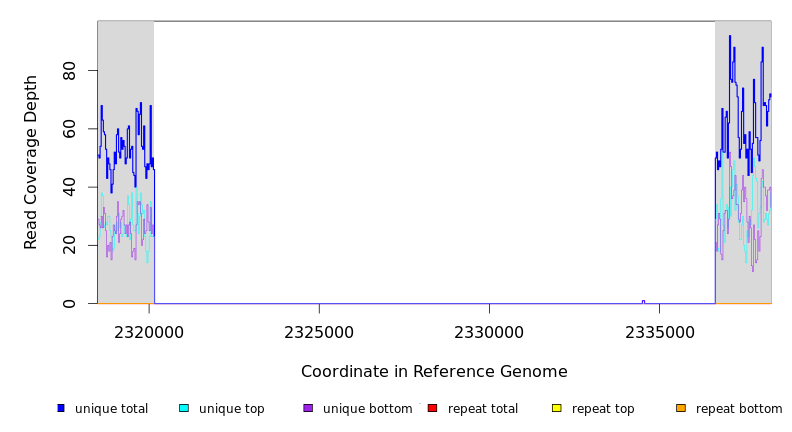 | seq id | start | end | size | ←reads | reads→ | gene | description | |||