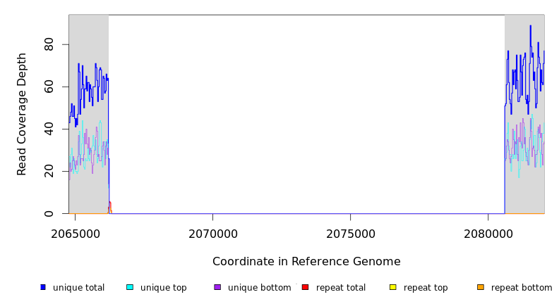 | seq id | start | end | size | ←reads | reads→ | gene | description | |||