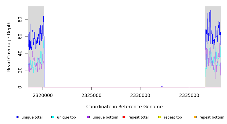 | seq id | start | end | size | ←reads | reads→ | gene | description | |||