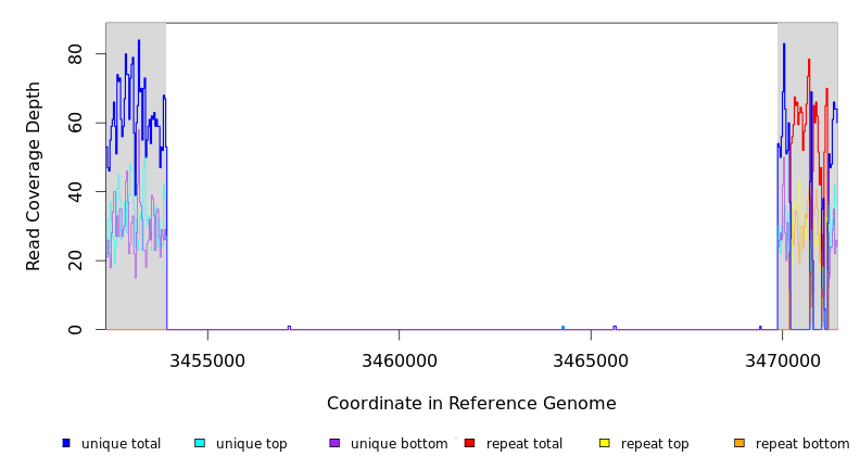 | seq id | start | end | size | ←reads | reads→ | gene | description | |||