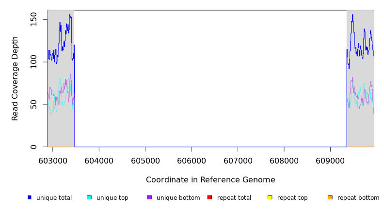 | seq id | start | end | size | ←reads | reads→ | gene | description | |||