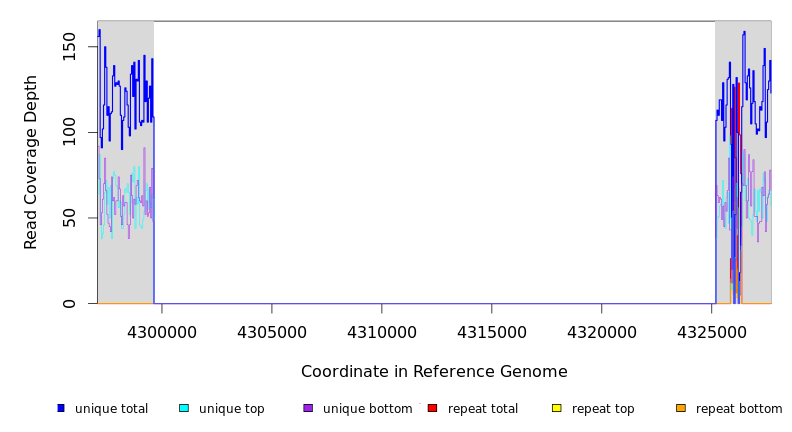 | seq id | start | end | size | ←reads | reads→ | gene | description | |||