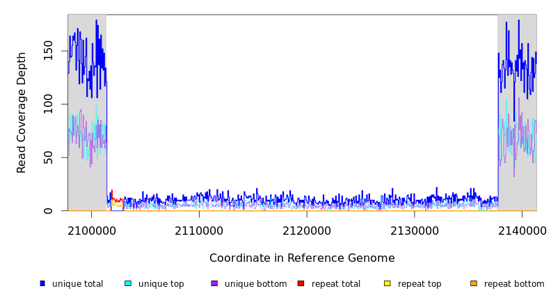 | seq id | start | end | size | ←reads | reads→ | gene | description | |||