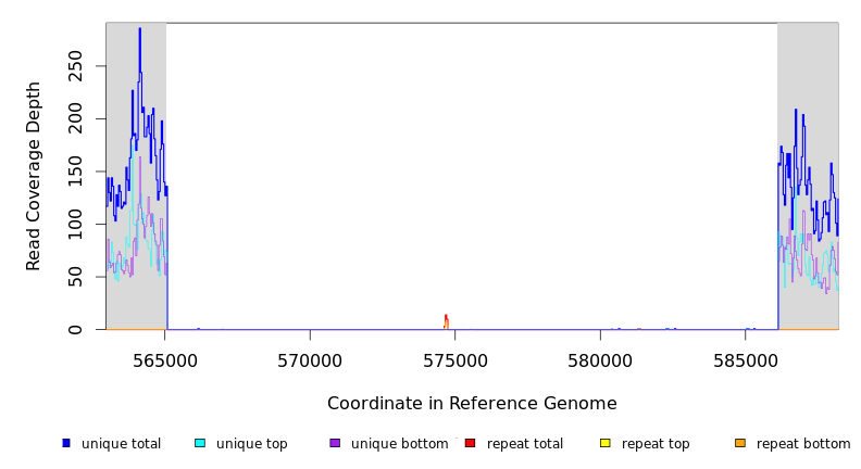 | seq id | start | end | size | ←reads | reads→ | gene | description | |||