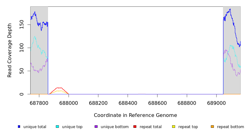 | seq id | start | end | size | ←reads | reads→ | gene | description | |||