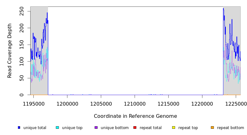 | seq id | start | end | size | ←reads | reads→ | gene | description | |||