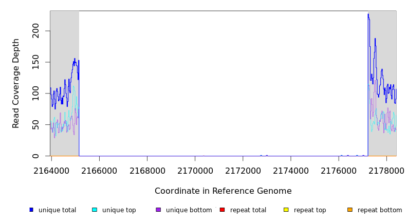 | seq id | start | end | size | ←reads | reads→ | gene | description | |||