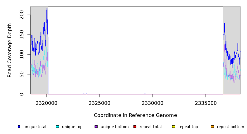 | seq id | start | end | size | ←reads | reads→ | gene | description | |||
