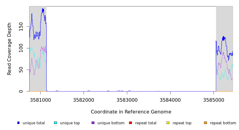 | seq id | start | end | size | ←reads | reads→ | gene | description | |||