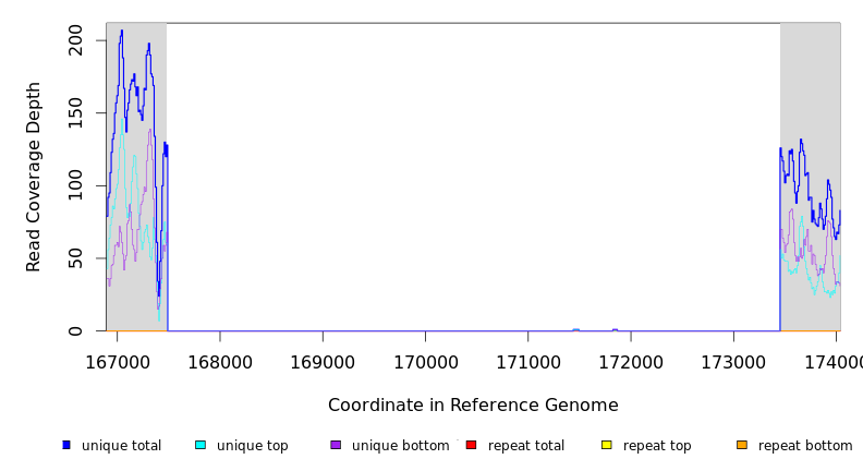 | seq id | start | end | size | ←reads | reads→ | gene | description | |||