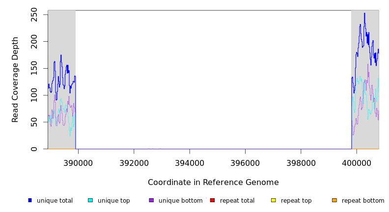 | seq id | start | end | size | ←reads | reads→ | gene | description | |||