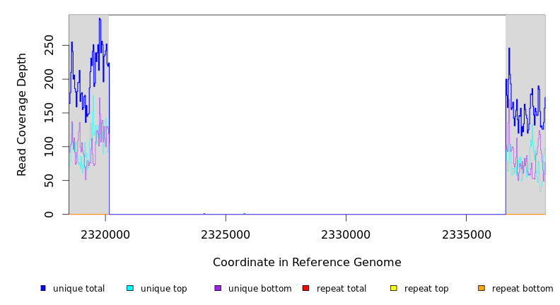 | seq id | start | end | size | ←reads | reads→ | gene | description | |||