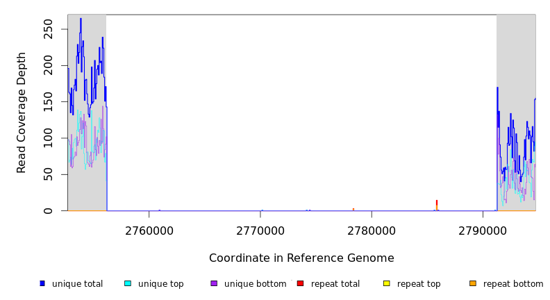 | seq id | start | end | size | ←reads | reads→ | gene | description | |||
