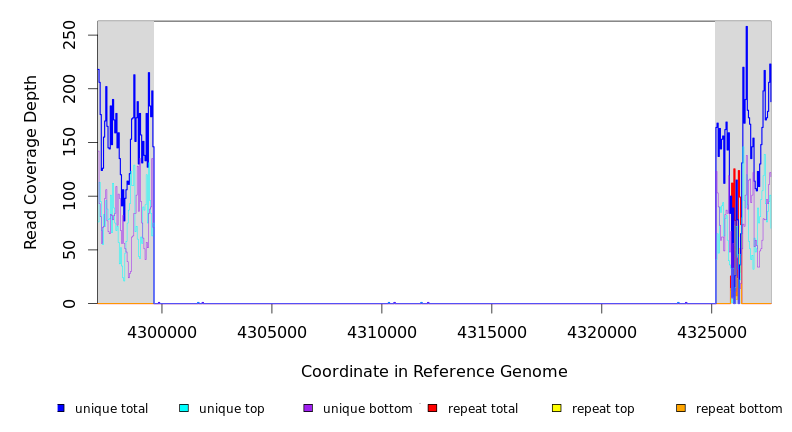 | seq id | start | end | size | ←reads | reads→ | gene | description | |||