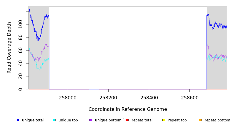 | seq id | start | end | size | ←reads | reads→ | gene | description | |||