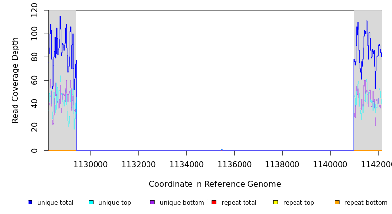 | seq id | start | end | size | ←reads | reads→ | gene | description | |||