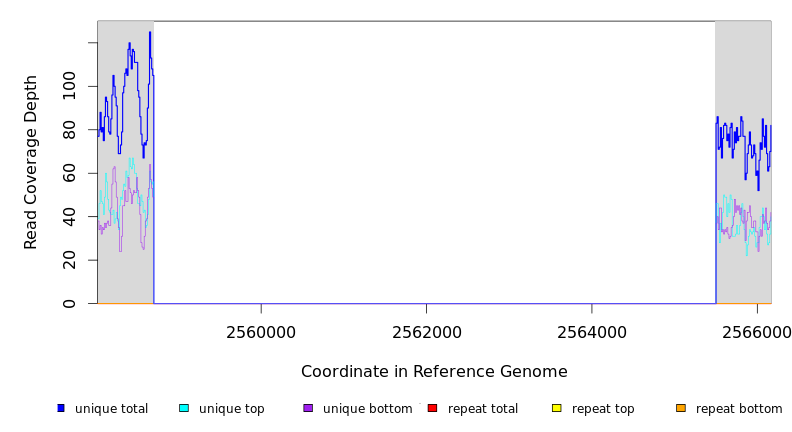 | seq id | start | end | size | ←reads | reads→ | gene | description | |||