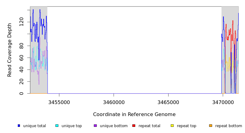 | seq id | start | end | size | ←reads | reads→ | gene | description | |||