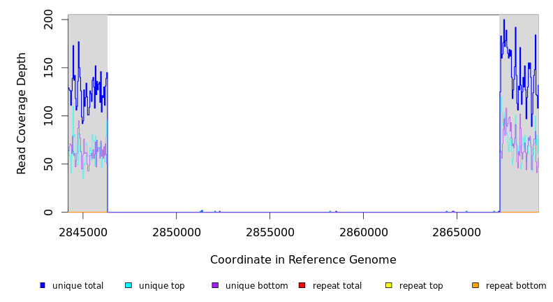 | seq id | start | end | size | ←reads | reads→ | gene | description | |||