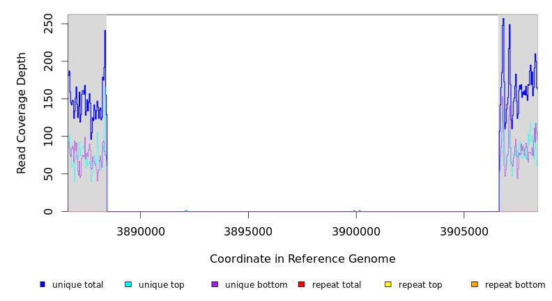 | seq id | start | end | size | ←reads | reads→ | gene | description | |||
