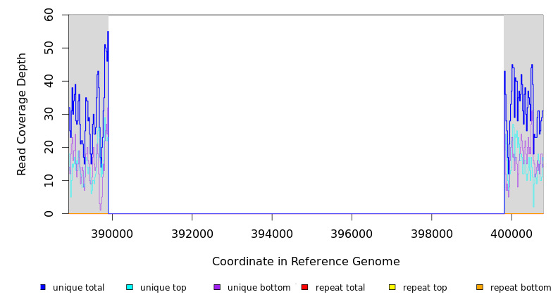 | seq id | start | end | size | ←reads | reads→ | gene | description | |||