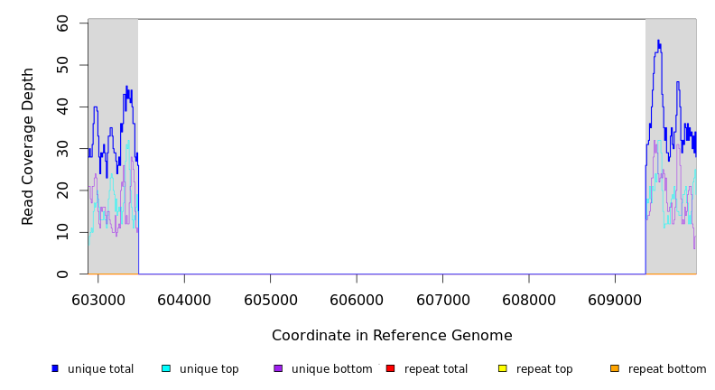 | seq id | start | end | size | ←reads | reads→ | gene | description | |||